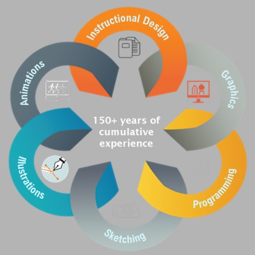 Since 2014, Cognitel has been actively developing online training content, for Corporates, Government Departments and for its own consumption. Till date, we have completed development of more than 3000+ hours of online content. Cognitel has been able to adapt itself to the changes of technologies and market requirements, so that the product output to our customers are engaging and the desired learning efficiency is achieved. During the period, Cognitel has built a highly competent team comprising of Project Manager, Quality Controllers, Instructional Designers, HTML Programmers and Graphic Designers with a cumulative experience of more than 200 years.