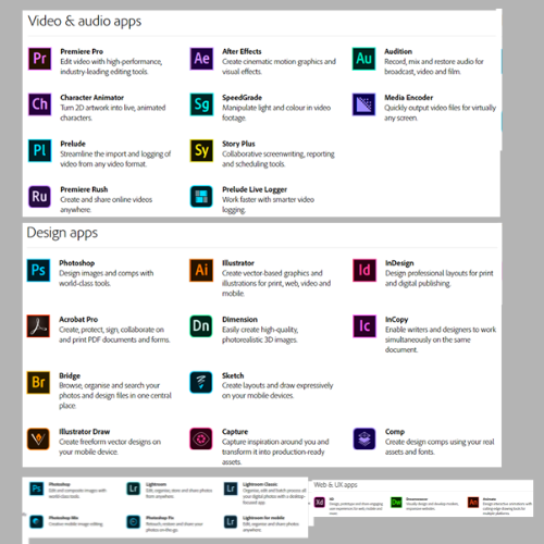 Our team is adept to working on tools such as Adobe’s Creative cloud suite that includes over 30 software:
