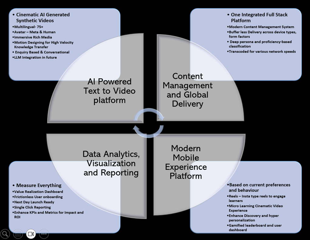 Cognitel has a feature rich and state of art Mobile learning platform which can be customized for our clients to enable them to disseminate and consume various types of e-learning content. Cognitel has an AI-powered B2B SaaS Platform Solution for Organizational Knowledge Transfer. The solution empowers organizations to distribute all their text-based knowledge and information repositories efficiently in video formats to be consumed by its people and ecosystem, organization can drive growth, improve productivity, and accelerate business outcomes.